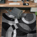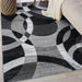 • Overlapping circle design: A bold geometric pattern in gray, black, and white tones adds a modern accent to living rooms, bedrooms, and hallways.