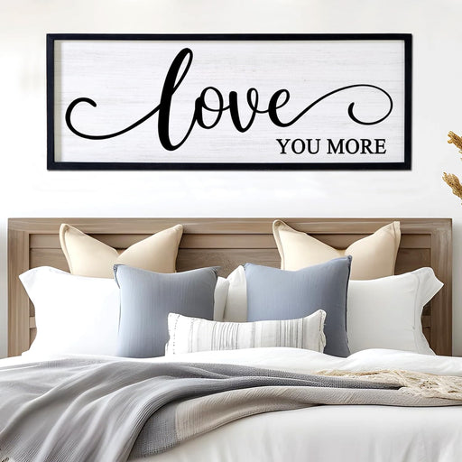 View full detailsLove You More Decorative Rustic Sign & Plaque Framed Wall Art for Couples, 40''×15'' Vintage Cottagecore Wooden Horizontal Love Quote Home Decor Above Bed for Living Room, Farmhouse Wedding Gift