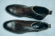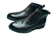 Viko Men's leather brogue ankle boots with a side zipper|feature a side zip closure for easy wear, in addition to the boot style|Dark brown.