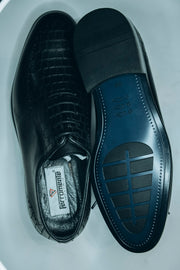 Elevate your formal wardrobe with these sophisticated Derby dress shoes, crafted from premium black leather with an intricate crocodile-embossed texture that commands attention. The refined brogue detailing adds classic character while the structured Derby silhouette ensures a polished fit for any occasion—from boardroom meetings to evening events. Versatile enough for smart-casual wear yet refined enough for black-tie affairs, these shoes deliver timeless elegance with a contemporary edge. The textured leather surface resists everyday wear while maintaining its luxurious appearance, making them an investment piece for the discerning gentleman.