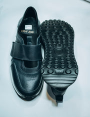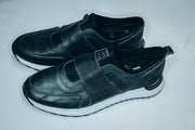 Pieno men's black leather casual shoes with dual velcro straps|Casual slip-on sneaker