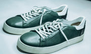 OTIK men's dark green low-top leather sneakers with white laces and soles|Low-top lace-up casual sneaker.