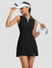 - Half Zipper Collar Women's Tennis Dress Polo neck design combined with smooth zipper, one is for stand-up collar and the other is for lapel.Sports dress can be easily adjusted to your comfortable position.Flare of the slimmer fitted curves your feminity and cuteness.