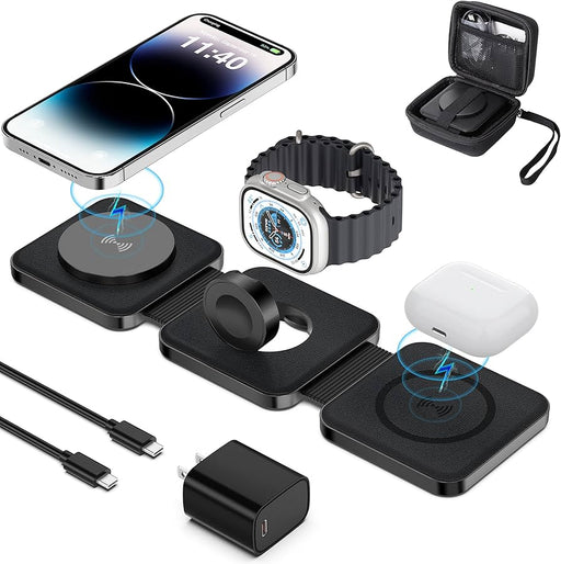 Cargador inalámbrico 3 en 1 plegable con ventosa magnética