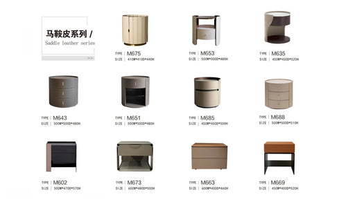 Ver todos los detallesItalian Saddle Leather Round Solid Wood Bedside Table Home Bedroom Minimalist Bedside Cabinet with Storage Accent Tables