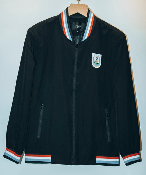 partners-demoHaut universitaire décontracté pour femme. Ce haut boutonné gris et noir est une pièce d'inspiration sportive avec une lettre brodée.